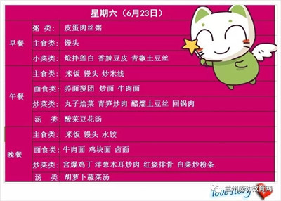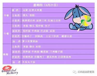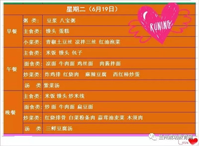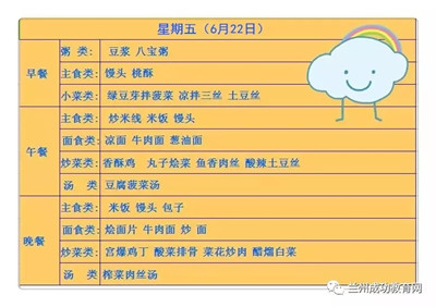温馨提示:6月21日即将到来,这一天是24节气之一——夏至。夏至后,气温逐渐升高,人体出汗量也会随之增加,因此人体需水量大。对此,兰州成功学校后勤科根据时节变化,选择新鲜蔬果为学生制定出营养合理的食谱。为了将学校的餐饮服务工作做得更加细致,学校针对中小学生成长发育特点及不同学习阶段对营养的需要,制定了不同的食谱,让孩子们的饭菜更加健康、营养、科学。同时,为了让孩子的饭菜更加丰富,学校不断推陈出新,研究新的菜品。下面来看看兰州成功学校本周都有哪些美食吧!