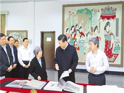 8月19日至22日,中共中央总书记、国家主席、中央军委主席习近平在甘肃考察。这是19日下午,习近平在敦煌研究院察看珍藏文物和学术成果展示,了解文物保护和研究、弘扬优秀历史文化情况。新华社发