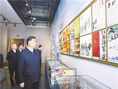 8月19日至22日,中共中央总书记、国家主席、中央军委主席习近平在甘肃考察。这是20日上午,习近平在张掖市高台县参观中国工农红军西路军纪念馆。新华社发