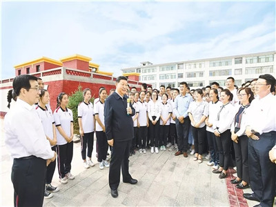 8月19日至22日,中共中央总书记、国家主席、中央军委主席习近平在甘肃考察。这是20日下午,习近平在张掖市山丹培黎学校同师生亲切交流。新华社发