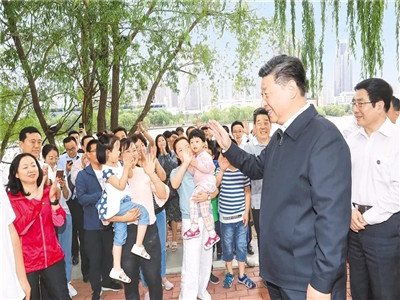 8月19日至22日,中共中央总书记、国家主席、中央军委主席习近平在甘肃考察。这是21日下午,习近平在兰州市黄河治理兰铁泵站项目点,同正在休闲的群众亲切交谈。新华社发