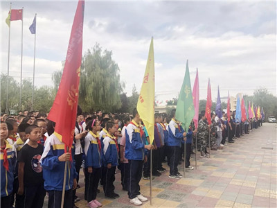 本次授旗仪式由河西成功学校副校长包兴龙主持,河西成功学校校长助理、初中部校长胡小青,河西成功学校校长助理、高中部校长刘润霞,河西成功学校校长助理、小学部校长马兴峰及全体师生参加。