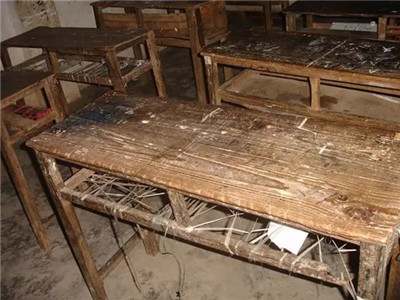 我们会在破旧的课桌下缠绕上绳子
