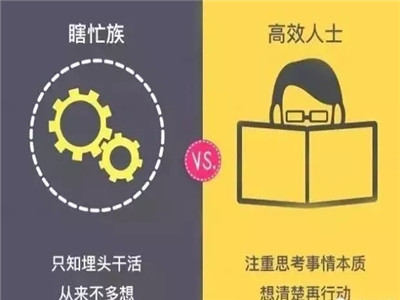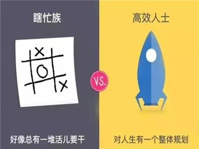 瞎忙族和高效人士的时间都安排得很满,但是却有本质的区别。瞎忙族是没有目标和方向的忙碌,整天被外部力量推着赶着,永远有忙不完的活,永远在救火,但是却说不上来忙了些啥,为了啥。