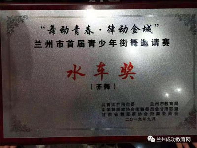 比赛中,我校街舞社团代表队动作到位、神采飞扬、默契配合,把自己最好的一面展现给大赛评委和观众们。功夫不负有心人,在师生的共同努力下他们荣获首届“舞动青春·律动金城” 兰州市青少年街舞邀请赛“水车奖”!