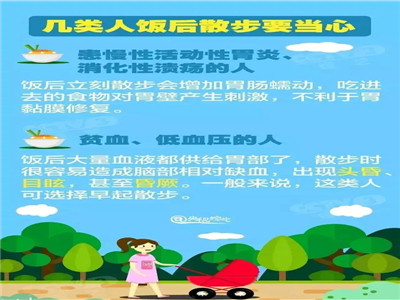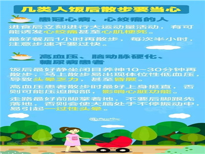 下面是央视三套为饭后散步人群所做的提醒,尤其针对一些特殊群体给出了合理的建议,请大家花几分钟看看——