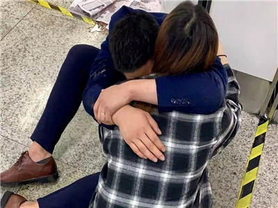 几分钟后,男子的妻子现身,上一秒还强装镇静的他瞬间崩溃,抱着妻子大哭,声音颤抖开始不断道歉,“宝宝对不起啊,我感觉我没有用......”